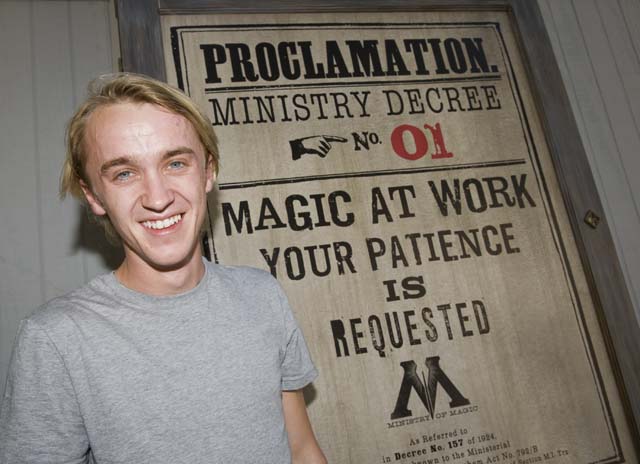 Tom Felton, the actor who plays Draco Malfoy in the Harry Potter series of films was at Universal today with his girlfriend, Jade Gordon (a production assistant on “Harry Potter”).