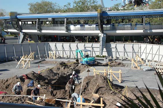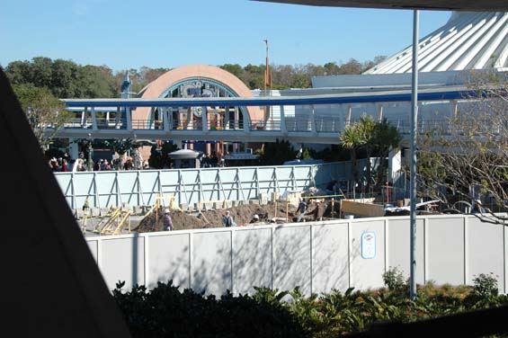 We headed towards Tomorrowland because I had heard they had closed the Galaxy Theatre. In front of the construction wall will be a meet and greet area. They are working there and in front of the old platform for the sky ride.  This is located between Space Mountain and Carousel of Progress. They are building a new stage for the celebrate Galaxy Day with Stitch. They will have a stage show happening several times a day when it is finished.  Several months ago I finally attended a Music event at the Galaxy Theatre.  It was one of those places that I had never visited in all my trips to Magic Kingdom.  They will be moving the music events from Magic Music Days from Magic Kingdom to Downtown Disney and their new stage.