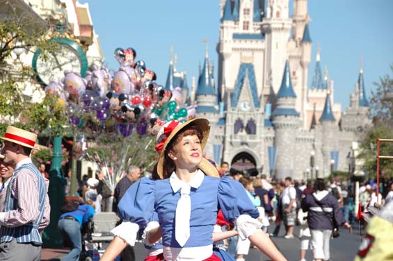 As we turned and walked down Main Street I got to watch one of my very favorite groups.  The Main Street dancers were performing the Trolley Song.  This always gives me the goosebumps and I must have seen it hundreds of times.  This is true Disney magic for me.  One of my fantasies is to be a Main Street dancer for a performance.
