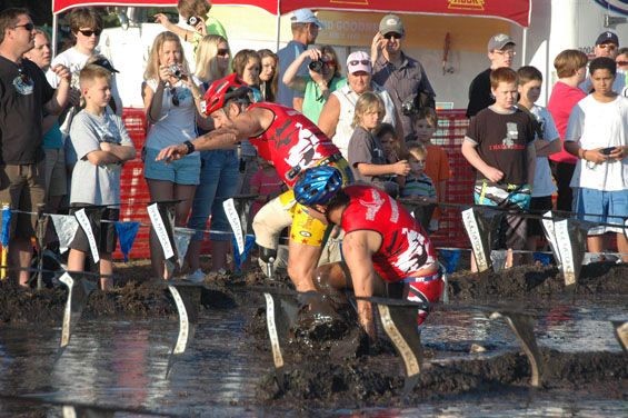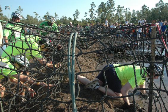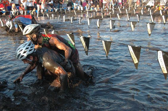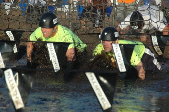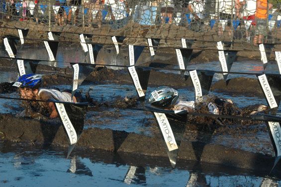Before we knew it the first group approached the mud pit. I couldn’t wait to see this part. Without hesitation they dove right into the mud. The crowd was chanting “on your belly.”