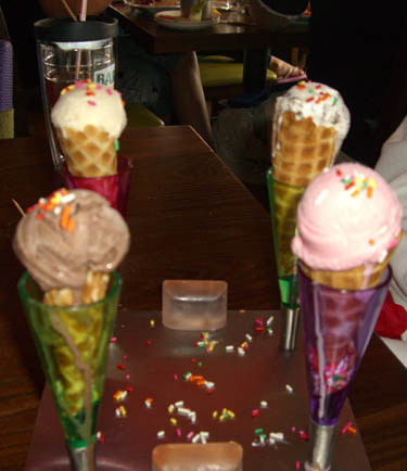 The four mini ice cream comes are freshly made waffle cones, filled with about a tablespoon of ice cream and dusted with sprinkles. As I’ve said previously, there were no surprises. They were small ice cream cones.