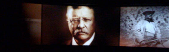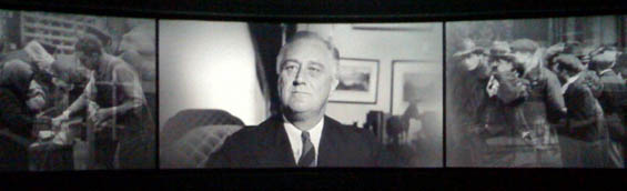 After that, Lincoln sits back down and the movie and narrative continues with a focus on the struggles that all Presidents face as they strive to perform a most unenviable job. Images of some of the most recognizable Presidents fill the large tri-paneled screens. Names and faces like FDR, JFK, Bill Clinton and George W. Bush remind us that each President faces his own challenges during his Presidency.