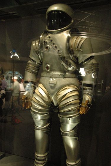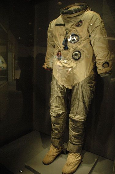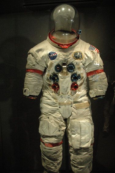 Yesterday Kennedy Space Center opened a new exhibit, the Apollo Treasures Gallery. This exhibit has rarely seen items such as Apollo 14 Commander Alan Shepard’s space suit, a very heavy prototype space suit, along with several other space suits. There is also a collection of shoes, helmets, gloves, a tool kit used in space, instruction manuals.