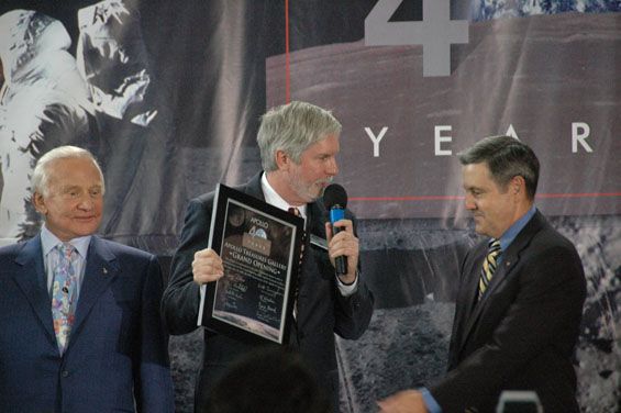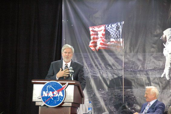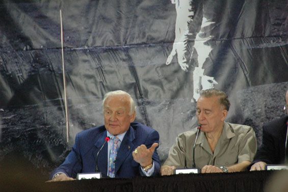 Finally it was time for the official ceremony celebrating the 40th Anniversary of the Apollo program. There was a number of Apollo astronauts appearing. The ceremony took place under the very large Saturn 5 rocket. In the audience were employees and families of the companies that helped build the shuttle and worked for NASA forty years ago.
