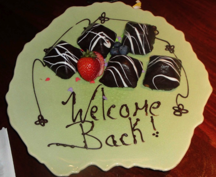 Dilly was not finished with just one magical moment. At the end of our meal, he brought out a special dessert with Welcome Back written in chocolate. Also, he made sure to sign my son’s birthday card with a personal message. Dilly was memorable, but he was not alone in his ability to create magic moments.