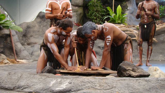 Again, like everything else Disney has done on this trip, our experience here was a bit more unique than the general public would experience.  Our group was taken in before the park opened to the general public and we were got to experience all the demonstrations privately.  First, we had our faces painted in traditional aboriginal warrior style.   When I looked in a mirror and saw my face all painted up I thought I looked like a psychotic aboriginal drag queen.   From there we were treated to a demonstration of traditional Aboriginal dance and music – and several members of our group (including Walter) got up on stage and danced with the performers.  Let me repeat that – Walter – a man with not one ounce of rhythm got on stage with a painted face and danced.  I have video and I’m not afraid to use it .