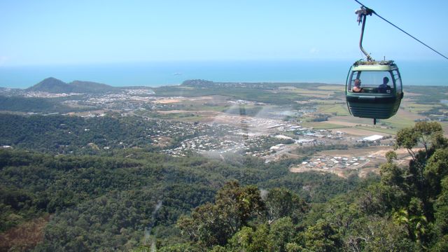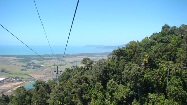 Just outside the cultural center was the Skyrail – which takes you high above the rain forest and gives you stunning views of the surrounding area.  Please keep in mind that I can’t get on a ladder without feeling like I’m going to pass out so exactly what it was that possessed me to get on this thing is beyond me.  Well, that’s not entirely true, I thought the video would be hard to beat and I was right – but I had to let Walter do most of the taping.   There were a total of 6 members of our group who decided to do this, and they all really seemed to enjoy the fact that I was crapping my pants right in front of them as this thing ascended over the rain forest, swung from side to side, and just to make sure my bowels were completely empty, they would stop it from time to time and leave us hanging there like David Carradine in a pair of fishnets (too soon?)