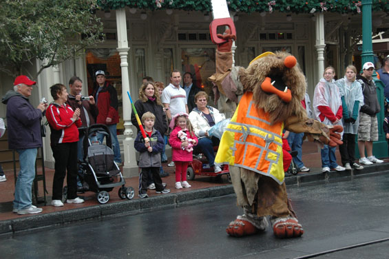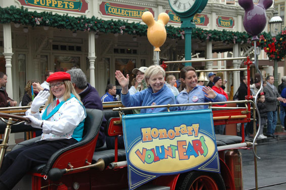 It was a gloomy rainy day today in the park but the Cast members made it feel like a bright sunny day with all their energy. Disney’s attention to detail is amazing in this parade. The parade helps to focus on the Give a Day, Get a Disney Day program. This program urges us all to find a volunteer activity in our community. There were two cars with the honorary VoluntEars of the day.