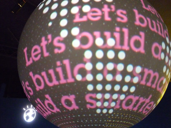 This giant rotating ball hangs over the area scrolling messages.