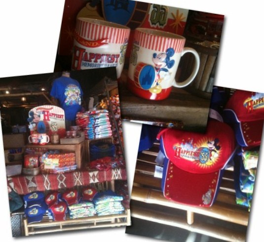 July 2010 marks two anniversaries for Disneyland. The 55th Anniversary of Disneyland Park occurs in July, but merchandise is already appearing on display in various key Disneyland Shops. The theme of the Anniversary is simply “The Happiest Memories on Earth“, a play on the Disneyland slogan of being the “Happiest Place on Earth“. Most of the merchandise is simply designed, but a few pieces (that I thought were particularly fun) are the recreation of the original ticket books for $5.95, the bi-color baseball hat, and the coffee mug – which had a really good quality weight and design.