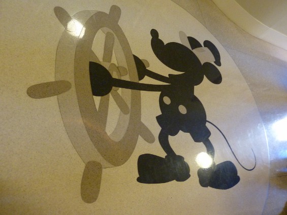 The centerpiece was the inlaid Steamboat Willie, made of various marbles and other materials.