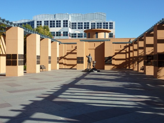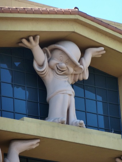 From there, we walked to Legends Plaza. This open plaza sits near the front of the Studios’ Alameda entrance and lies between its two most prominent buildings – the Administration Building with the Seven Dwarves pediment