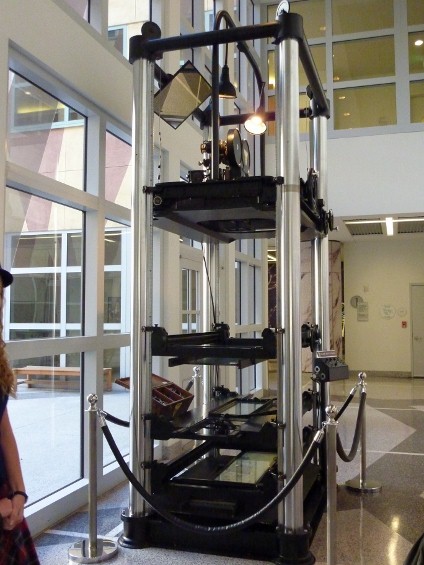 We then turned a corner into a bright hallway, which exhibited one of the few existing multiplane cameras, patented by Disney.