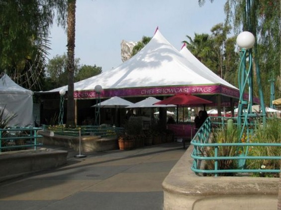 The most obvious location of activity is the Chef’s Showcase Stage. You can’t miss this massive tan tent from the moment you enter the Park’s turnstiles – it’s directly in front of you under the giant sun. This stage is home to the food demonstrations and celebrity speakers.