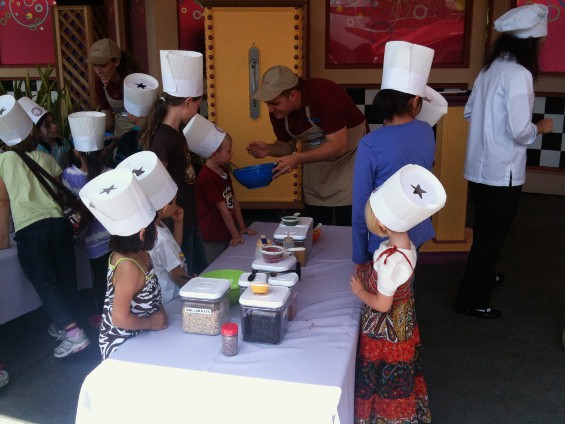 After experiencing the first weekend of Disney’s California Food and Wine Festival 2010 with my Disneyland Correspondent Team, I can truly say that whether you are a casual and unaware visitor or are a seasoned passholder, the festival is bound to hold something in store for you. You basically have a choice: stumble on one or two of the features of the event (enhancing a normal day’s experience) or make a full day of it. It’s up to you. Let’s face it. Even if you know nothing about the festival, you will stumble across activities as you go from ride to ride. There are signs for special foods at every counter service eatery, you’ll walk past a little roped off area where you can pay to taste a sampling of wines or beers from around the state or the world, and you’ll see a tent that has a kitchen on a stage in the central hub of the park.