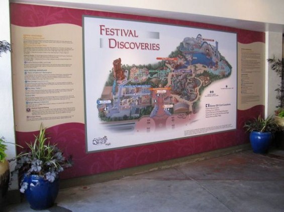 Located just inside the park gates (in the old stroller rental center) is the Festival Welcome Center. Besides having a very large map of the park and the Festival activity locations and some really spiffy Guest Services Cast Members to answer questions and sell you a wristlet gift card, It’s not much.