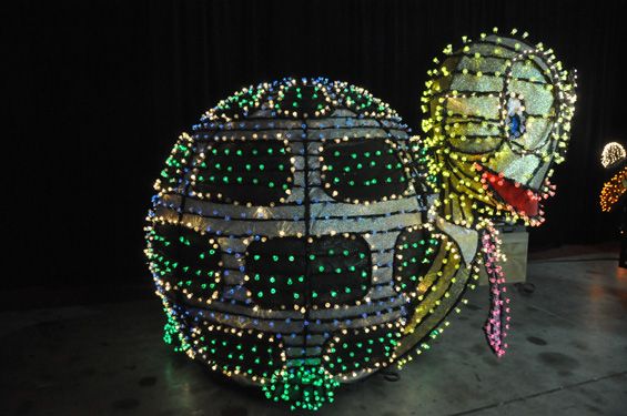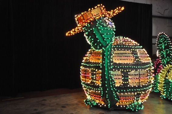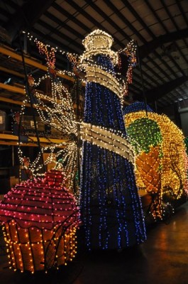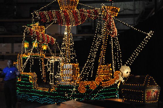 If you like the facts behind the parade, consider this: there are 575,000 lights in 6 different colors- Amber, Blue, Chartreuse, Green, Pink, Red, and Clear. More than 11,000 lights are used on the costumes. There are more than 27 tons of batteries which power the lights, audio, and drive units. They could provide enough power to light 32 homes. There is over 3,500 feet of green LED string used to create the leaf fields on the new Tinker Bell float. It took 26 trucks to move the parade floats across the country.