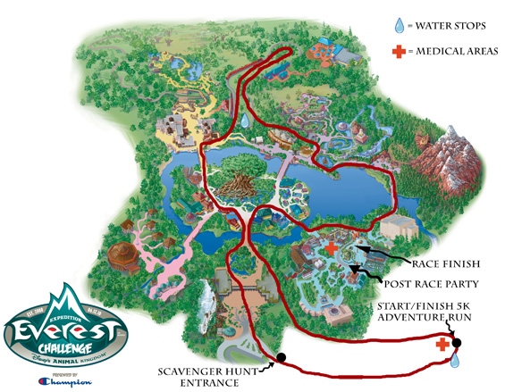 The EEC is different than other Disney races because, in addition to the 5k, competitors (most of whom run in teams of 2) must complete a series of obstacles and a scavenger hunt through Disney’s Animal Kingdom theme park. Another change this year was Disney integrated the obstacle course with the 5K run for a “5K adventure run.” The scavenger hunt was also modified from previous years to a more typical format where competitors receive a clue and must solve it before moving on to the next location.