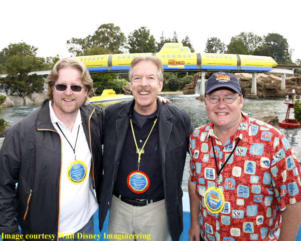 Image: Andrew Stanton (Director, “Finding Nemo”), Tony Baxter, and John Lasseter at the grand opening of the Finding Nemo Submarine Voyage at Disneyland.