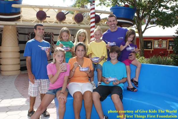 Ice Cream For Breakfast is an awareness and fundraising campaign for Give Kids The World (GKTW). Families at GKTW enjoy ice cream any time of the day, and the idea for the campaign came from one former Wish Family who celebrates the anniversary of their trip to GKTW by eating ice cream for breakfast just like they did in the Village. Former NFL quarterback Kurt Warner has been bringing families to GKTW since 2002, and Kurt along with his wife Brenda and their seven children (pictured below) are now the official spokesfamily for the “Ice Cream For Breakfast” campaign. Continue after the break for a video about the campaign, and to learn more about how you and your family can get involved.