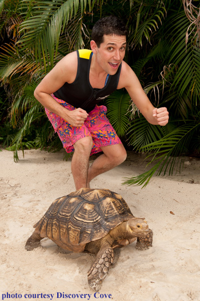 Amazing Race Winner Jordan Pious races Discovery Cove’s tortoise, Mor.
