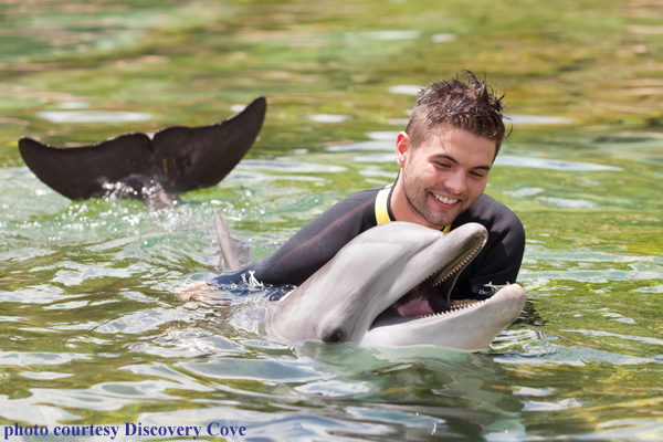 Discovery Cove is an all-inclusive where guests can swim with dolphins and rays, hand feed exotic birds and relax on white sand beaches. Dozens of winners, heroes and villains from the reality TV shows got together to get up close to the park’s exotic animals.
