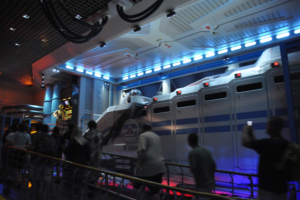 I decided before it got too crowded I would head over to enjoy  Star Tours before it closed. I have always enjoyed this ride and was sad to know it would be closing at the end of the evening.  I am excited for the new version coming in May 2011. I love to take pictures (if you can’t tell!) but inside the queue it was crazy.  You couldn’t walk 2 feet without running into people taking pictures of the attraction.  There weren’t a lot of people inside but everyone wanted their picture taken in front of the ride vehicle. There was a special feeling in the room as we took our ride. Lots of cheering and clapping as we toured the galaxy.