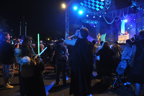 We all got a wristband and were given a brochure for the festivities.  I headed for the Bespin Stage Dance Party in front of the Sorcerer’s hat. The DJ certainly had the crowd rocking.