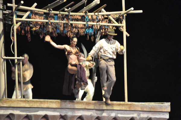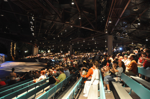 The crowd really enjoyed the show.  It was a mix of the Indiana Jones stunt show and Star Wars. It was a very high energy show and our show had no shortage of people that wanted to be volunteers to perform on stage. George Lucas, the creator of Star Wars was in the audience. There were also several Star Wars celebrities that performed in the show.