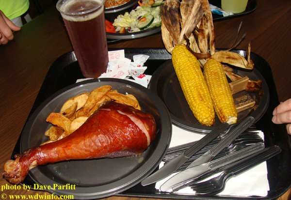 The food was fine for the most part. The only misstep was the turkey leg was so salty it was not edible. Evie even tried peeling the skin off the leg to see if that would help, but it was still too salty to eat.