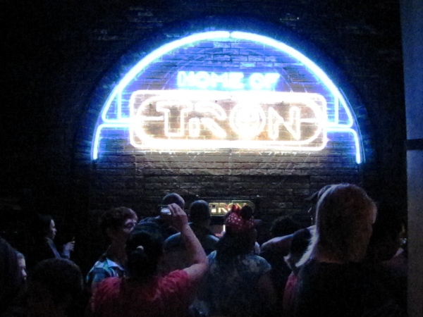 Down the street is a recreation of Flynn’s Arcade from the movie.  Inside are many of the classic arcade video games, including the one of the original TRON video games from back in the ‘80’s!  I couldn’t resist standing in line and inserting a few specialty tokens to play.  Level 1 was no problem.  Level 2 took a couple times to get through.  And as it was when I played long ago, I couldn’t get past Level 3.  Hmm, maybe I need to invent a program to get inside the machine to help me play!