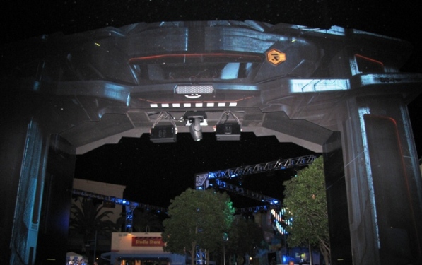 ElecTRONica extends into the studio area (where Muppet Vision 3D and Monsters, Inc. are located).  To gain access, guests must pass under a gigantic TRON Recognizer, which emanates sounds and lighting effects.  The model is very impressive and for us TRON fans it’s great to see a familiar icon of the original TRON movie.