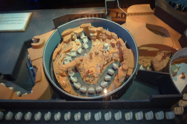 For someone that is a “How does it work?” fanatic, I thought this was one of the most interesting parts of the exhibit.  While a normal part of many architectural models, for those of us who aren’t trained in working with that level of creative detail on a daily basis, I thought it gave us an extraordinary glimpse into the minute details of building an attraction.