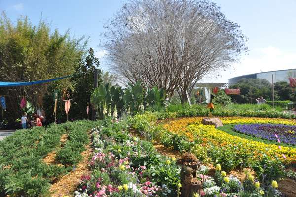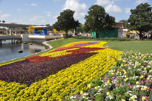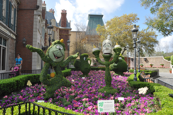 The 18th Annual Epcot International Flower and Garden Festival debuted today at Epcot in Walt Disney World. To me this signals Spring in Florida. The dates this year are March 2- May 15, 2011. It seems many were excited for the opening of the Festival as it was quite crowded this morning in Future World. The tag line for this years event is “Epcot Springs to Life”. It sure did!
