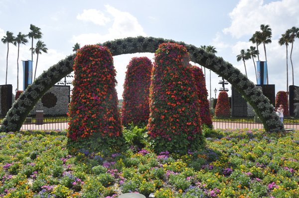 I really think this area needs more than these towers of flowers. Usually this is where they have a display of topiaries. It just seemed to be lacking. It wasn’t just me since there were no crowds here to prevent getting the picture. I also need to remind people of a little photo etiquette. If you see someone trying to take a picture please don’t walk in front of them. If you are backing up to take a picture make sure there is no one behind you. The closer you can get to these displays the better your picture will be.