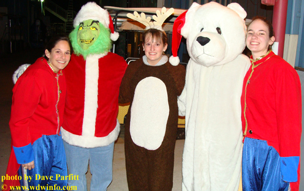 Speaking of owning the night, certainly the highlight of the week was participating in the Thursday evening entertainment. Every Thursday, the Village turns into a Winter Wonderland complete with Santa and Mrs. Claus passing out gifts to every child. We were joined by members of the Disney fan community including: Bernie Edwards and Marisol Lopez of the Walt Disney World Moms Panel and JL Knopp of the Disney Driven Life. Many of us then took part in the Winter Wonderland Parade where I dressed in costume as “the Grinch.” [No, I did not carve the roast beast.]