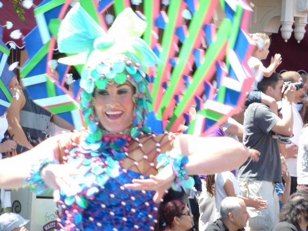 Chasing after the band, is a delightful hermit crab with a large pair of maracas! I thought this was the most creative use of traditional parade technology I had seen in a long time. He spun so fast that this isn’t the greatest photograph, but he is just the cutest little guy ever!