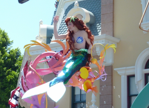 The Soundsational music returns as the next float comes into view. We frequent Disneyland guests always come to expect extremely creative costuming to accompany The Little Mermaid’s float and this parade is no exception to that expectation.