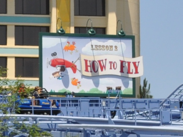 Guests take off in their “planes” and are given instructions via several billboards on how to fly. The existing ride-vehicles have been repainted and a “propeller” has been added.