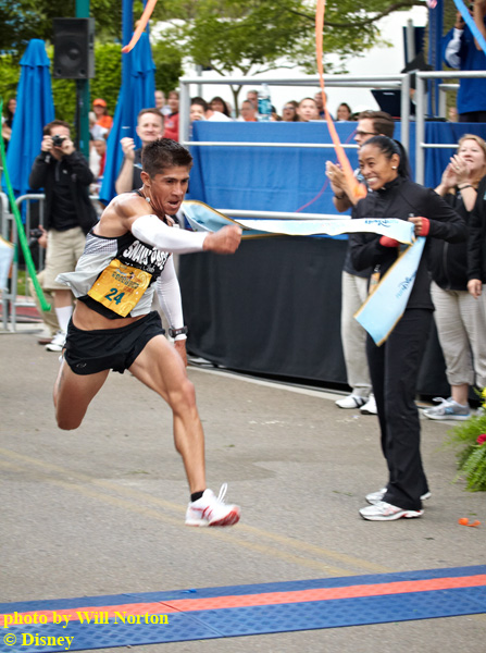 The men’s division was won by Humberto Rojas (27) of Fountain Valley, CA in 1:08:14 or 5:12/mile over the 13.1 mile course. Upon finishing the race Rojas commented, “it’s like being a little kid when you run in there (Disneyland). I live a couple miles away and I was like, ‘how cool would it be to run inside Disneyland.’ It’s like a dream come true.”