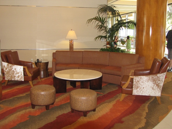 The lobby seating area opposite the front desk has a distinctive “Mary Blair” style in the carpet and furnishings. You can’t help but feel excited about all the new adventures you are about to encounter at this resort.