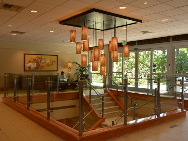The Hotel main lobby and registration front desk have received a very modern upgrade and a completely new color scheme. The browns and earth tones have been replaced by silver and blue and compliments the color pallet of the newly refurbished rooms.