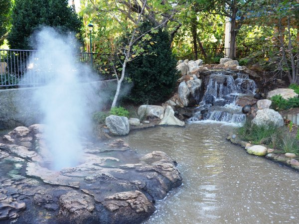 Image: Waterfall and geyser pool near the Frontier Tower.