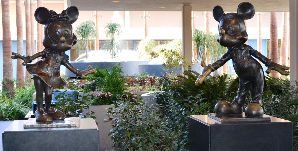 The classic Mickey statue has been replaced by a redesigned fountain and flower box along the front entry area.
