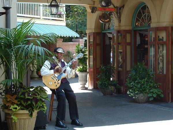 IMAGE: Ernie McLean entertaining in New Orleans Square (taken August 2007).