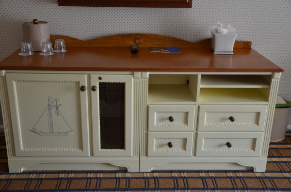 The nautical touches throughout did a great job of carrying the theme of the resort. The beds here are consistent with other Disney deluxe hotels – that’s to say that they are very comfortable. These beds are great to fall into after a long day in the parks. The lights above the beds can be dimmed or shut off from a switch just above the nightstand.
