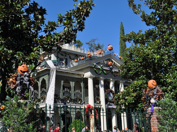 There are slight changes each year to the decorations, but the major change comes in the ballroom scene where the bakers of Disneyland build a huge gingerbread house. This year’s is one of the tallest ever and features some very neat effects. You’re going to have to trust me on that, as getting a picture on a moving vehicle inside a dark mansion is virtually impossible…in the meantime, here’s another picture of the mansion.