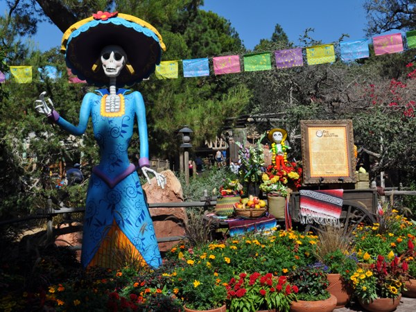 Crossing back to Frontierland, you’ll find the beginnings of Dia de los Muertos coming to the park outside the Rancho del Zocalo restaurant. Dia de lose Muertos is celebrated November 1st.