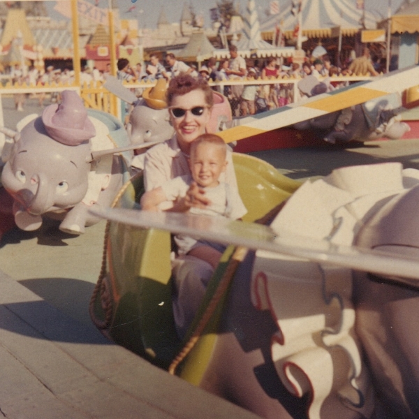 Then came the photos of Disneyland. Wonderful photos that really gave you a sense of how much Disneyland has grown and changed – like the photo of Michael and his mom, below. You can see that Dumbo used to sit right behind the castle, almost where the carousel is now, and that the carousel is a bit farther back than Dumbo is now!