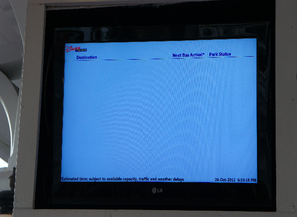 The two items above are certainly great and will help, but sometimes it’s not just about being efficient, it’s about giving the guests the knowledge they desire. Disney is finally jumping into the 21st century with wait time indicators for transportation! Recently, LCD screens have shown up at Disney’s Grand Floridian Resort & Spa, displaying wait times for the next bus and the destination that bus will be going to.